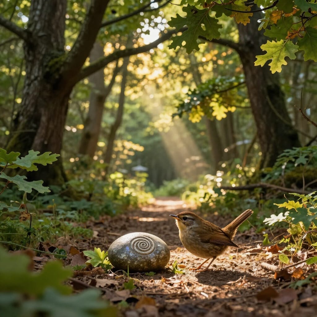 Something that had been waiting — not urgently, not impatiently — simply waiting, the way the trees wait, the way the stone waits, the way the pattern on its surface curves inward and then opens again into more.